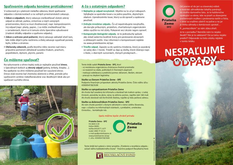 Spaľovaním odpadu v domácom prostredí alebo v záhrade dochádza k znečisťovaniu ovzdušia, lokálne môže prispieť k zhoršeniu kvality ovzdušia a k ohrozeniu zdravia obyvateľstva. Preto je spaľovanie povolené len v prevádzkach, ktoré disponujú príslušným povolením, spĺňajú prísne emisné limity, technické a prevádzkové požiadavky určené vyhláškou Ministerstva životného prostredia SR č. 371/2015 Z. z., ktorou sa vykonávajú niektoré ustanovenia zákona o odpadoch.